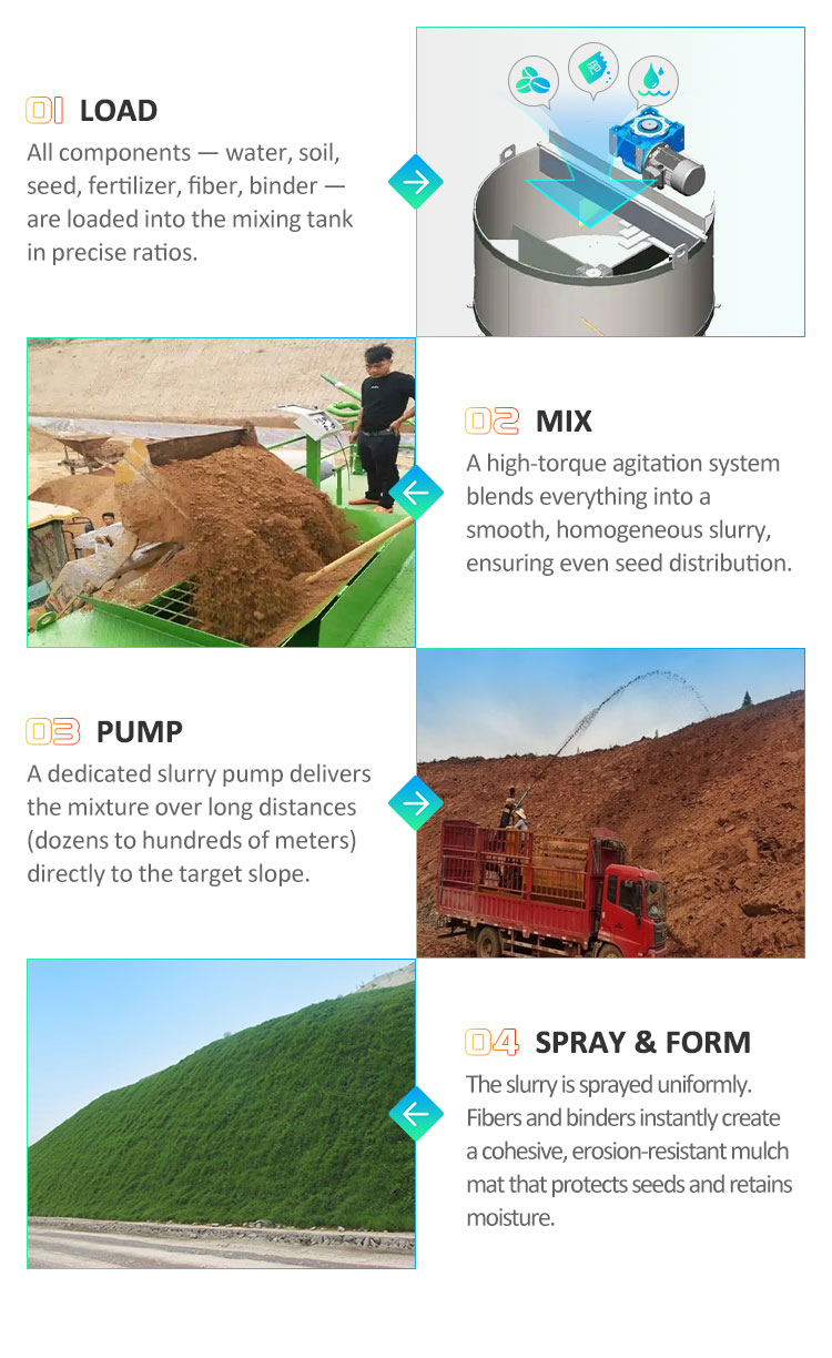 | Liquid Hydroseeder | YG-2 | 2 m³ | 600 m² | Horizontal: 10-20 m | 28.8 kW | 2,000 kg |